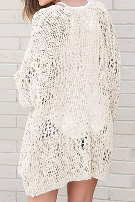 Casual Hollowed Knit Dolman Sleeve Cardigan